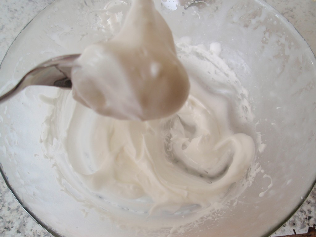 Ko je maslo raztopljeno, ga prelijemo v drugo posodo in dodamo mandljevo olje. Premešamo in počakamo, da se mešanica nekoliko ohladi (saj govorim kot prava gospodinja!)Nato se prične zabava – stepanje! Zagrabimo mešalnik z nastavkom za stepanje in mešamo nekaj minut, da nastane trdna smetana. Pozor: če kuhinjo čistite sami, uporabite visoko posodo za stepanje! Moja kuhinja je bila po izdelavi tega masla videti kot po snežnem metežu! 😉Maslo je gotovo, če ostane na navzgor obrnjeni žlici.:) Če je maslo premehko, ga lahko za nekaj časa postavimo v hladilnik in nato znova stepemo.