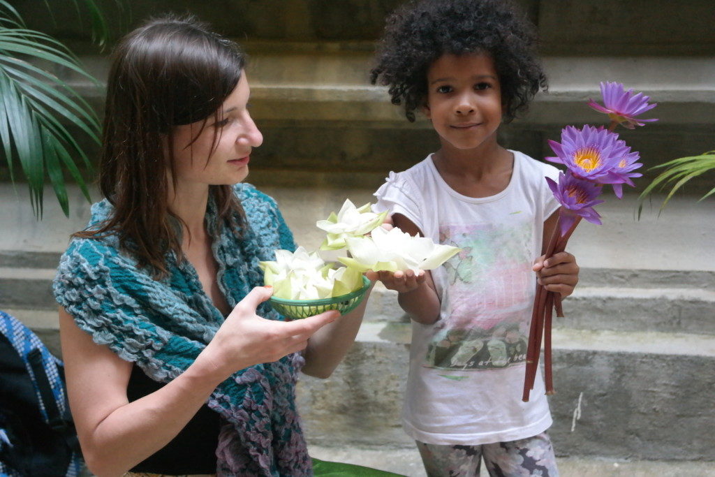 Zelo mi je všeč njihova verska kultura, v kateri ima cvetje in darovanje cvetja močno simboliko. V Budinem templju namreč darujejo cvetje. Ko sem ga omamno dišečega povonjala na oltarju, me je vodnik opozoril, da je to prepovedano in znamenje nespoštovanja. Tako da je bolje, da tisti obsedeni z vonjem nos pustimo pred vhodom. 😉