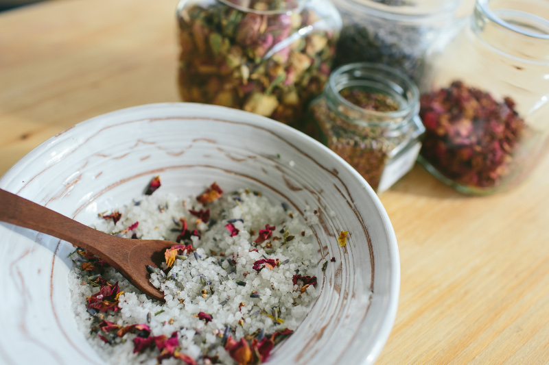 Sol stresete v kad s toplo vodo. Popolnoma se prepustite trenutku in uživajte v cvetnih vonjavah. Sama si vedno predstavljam, kako se sprehajam po cvetočem vrtu – tudi pozimi! 😉