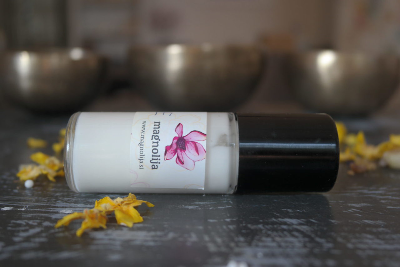 * Koncentracija eteričnih olj je 1,5 %. Za občutljivo kožo priporočam, da koncentracijo znižate na 1 %. Bodite pozorni – kapalke pri stekleničkah eteričnih olj se lahko med seboj zelo razlikujejo, zato je najbolj natančno, če eterična olja tehtate (za to potrebujete zelo natančno tehtnico).