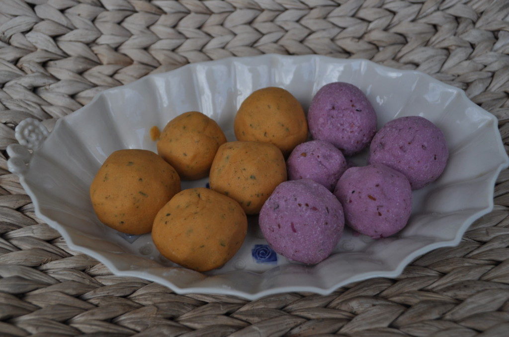 Potem ko smo pobarvali pirhe, sva se s hčerko lotili izdelave kopalnih kroglic. Čudovita ideja za ustvarjanje z otroki!